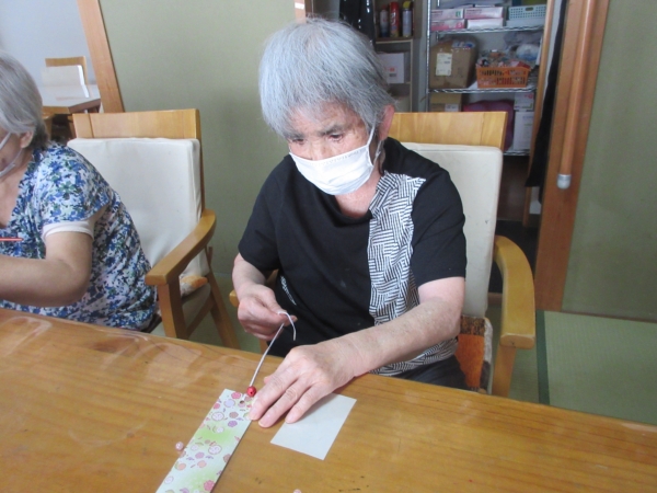 三つ折りにした折り紙を短冊に