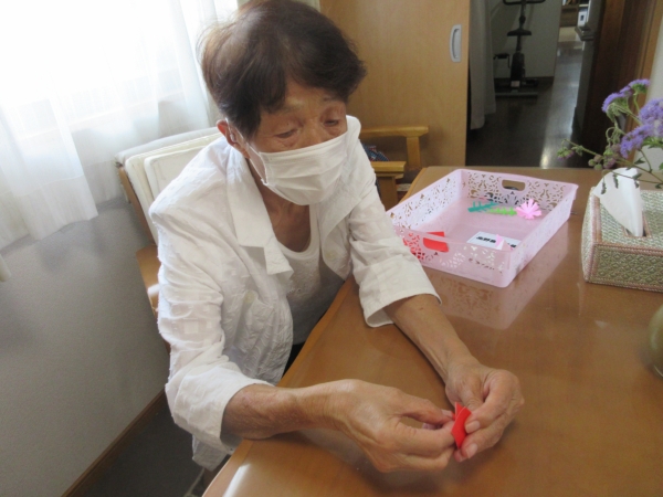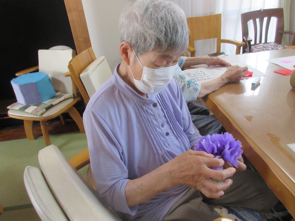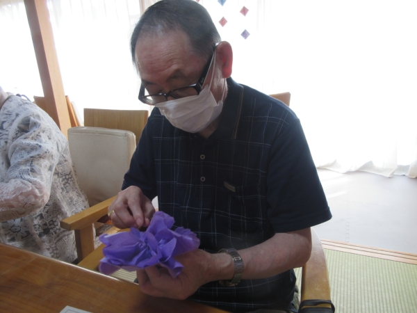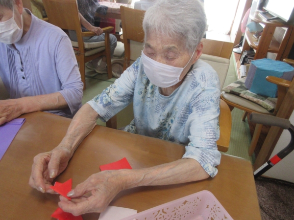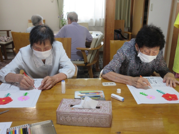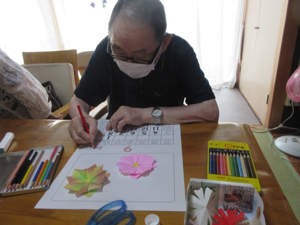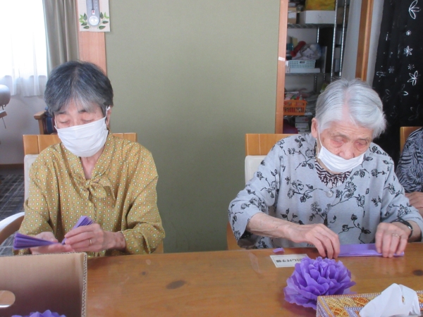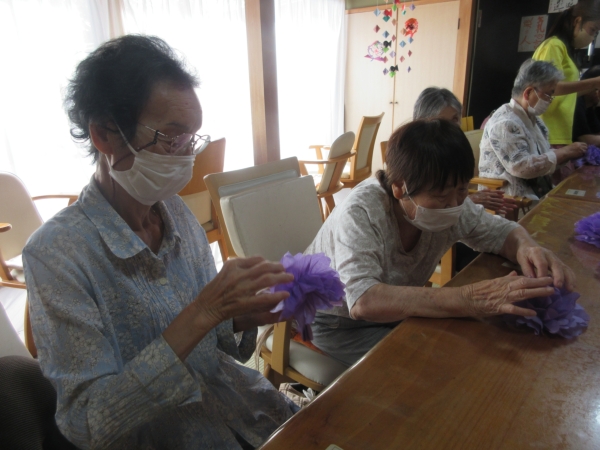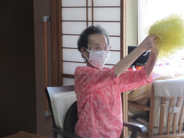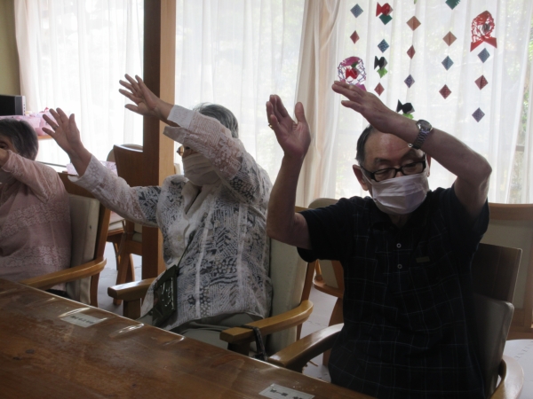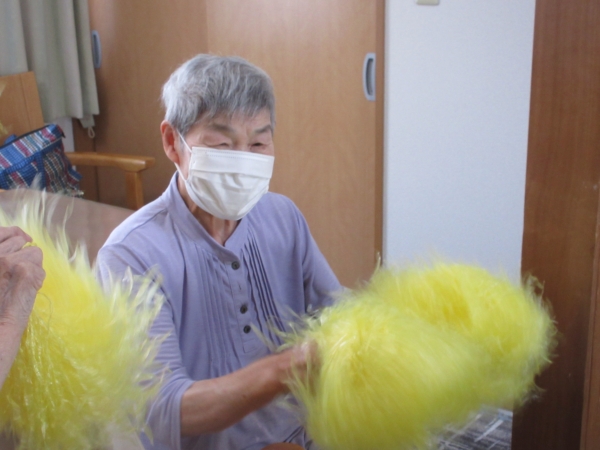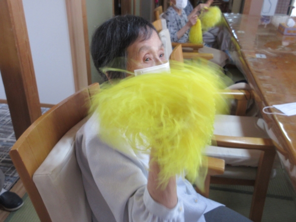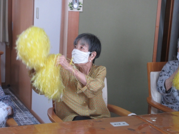 お次はポンポンを持ちながら楽しく上肢の体操も行っていきましょう