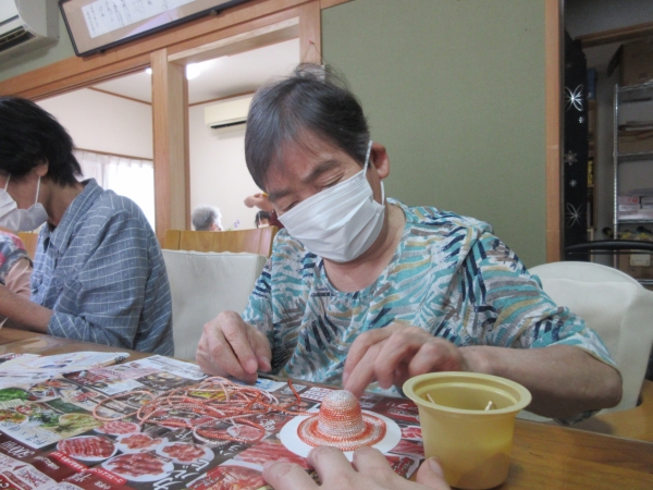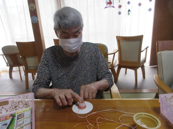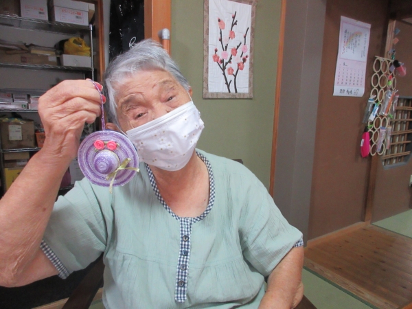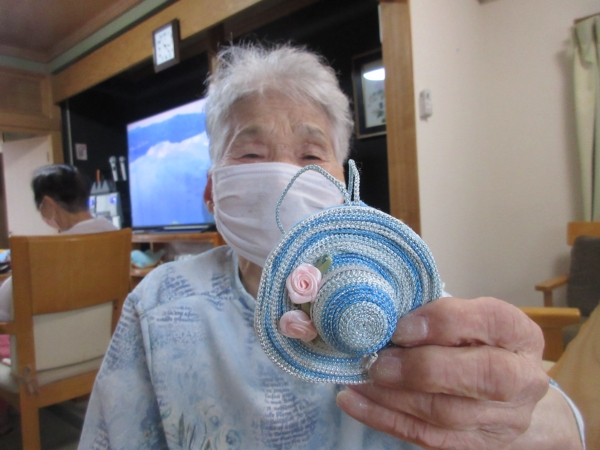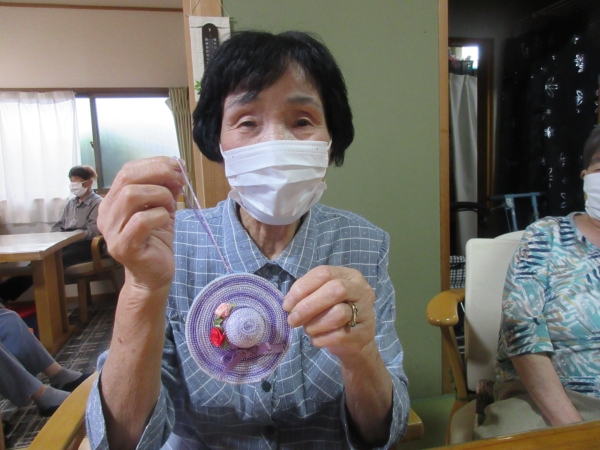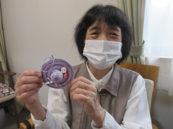 メタリックヤーンを使った帽子👒のチャームづくりです