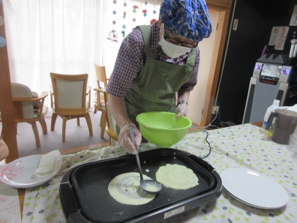 いい感じに生地が出来たら、ホットプレートで焼いていきます