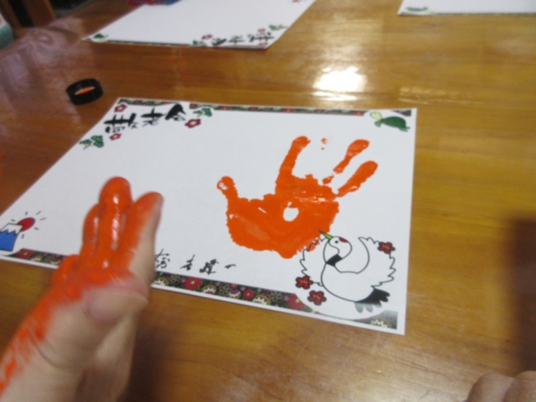 午前中にやった手形と写真を貼った台紙をパウチしたものと