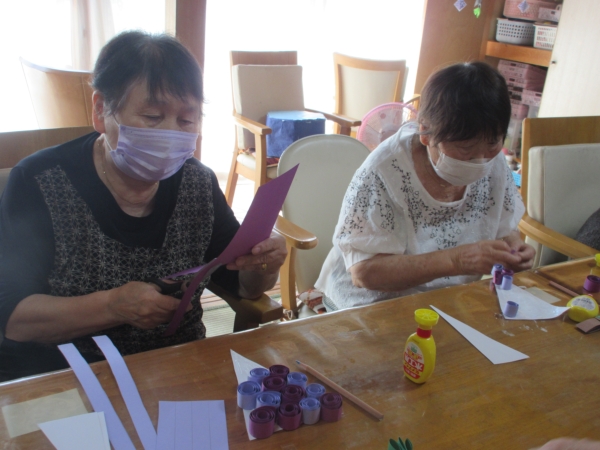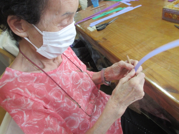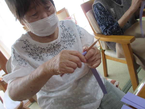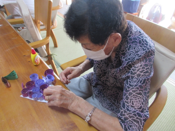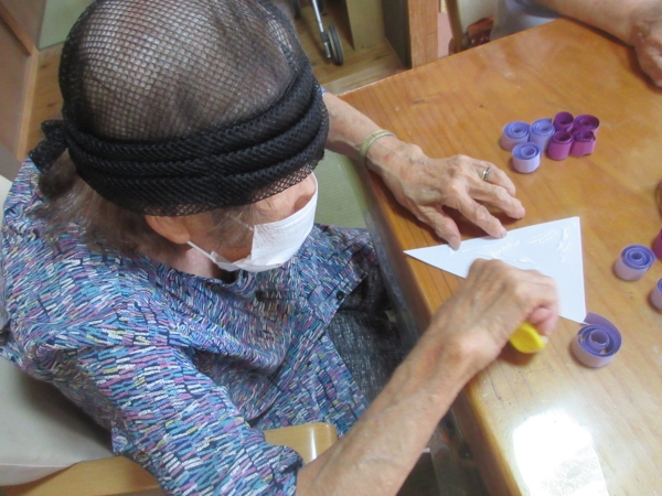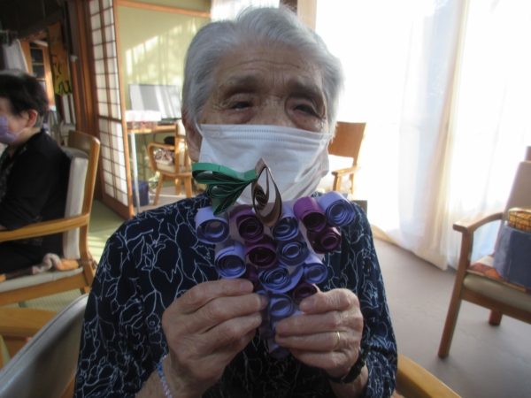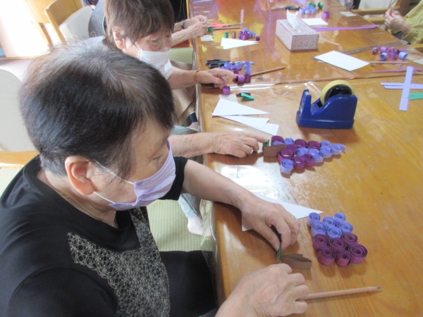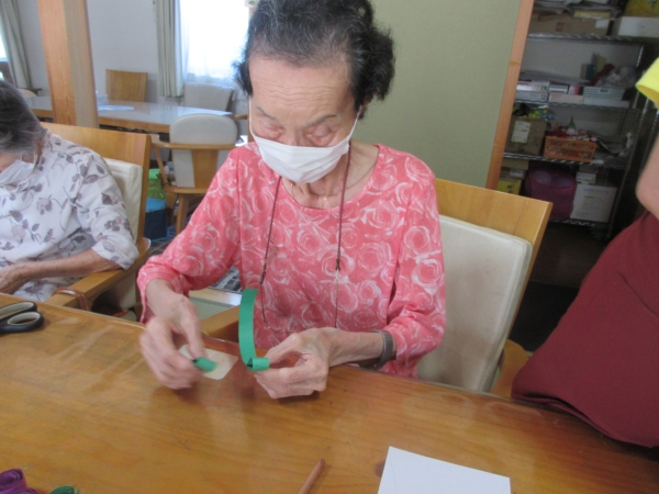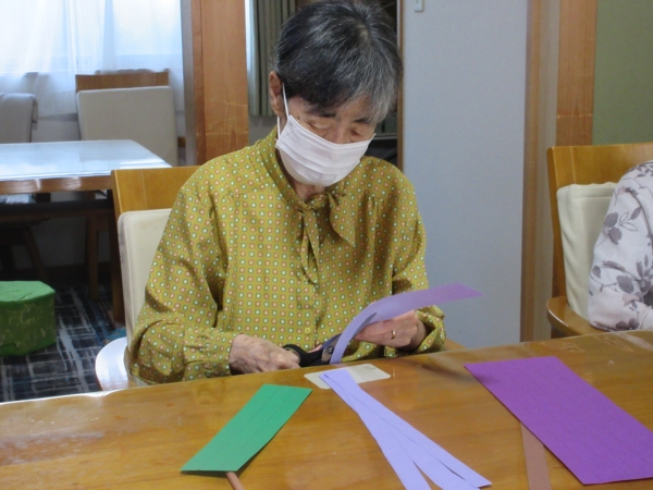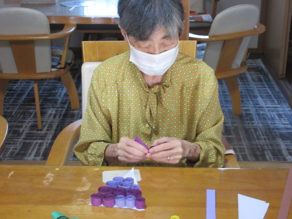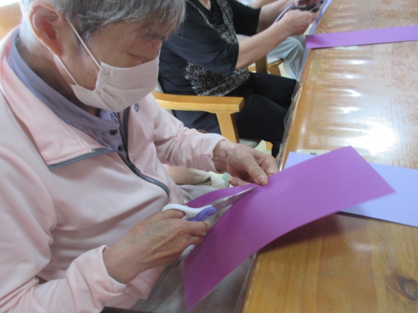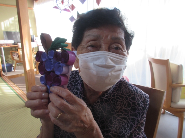 本日の午前のレクリエーションは秋の飾りを作っていきますよ