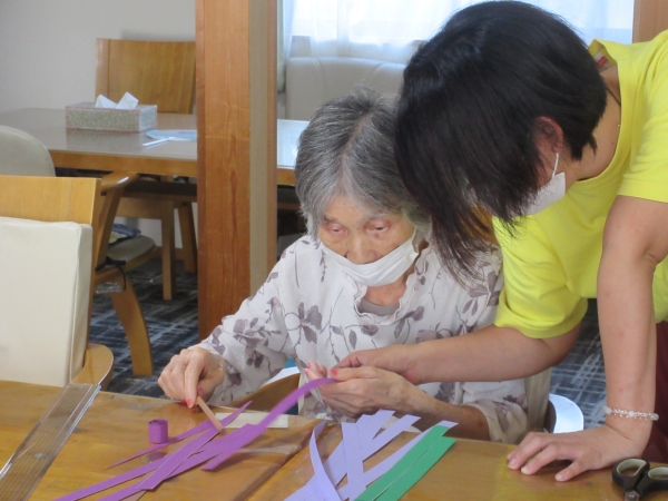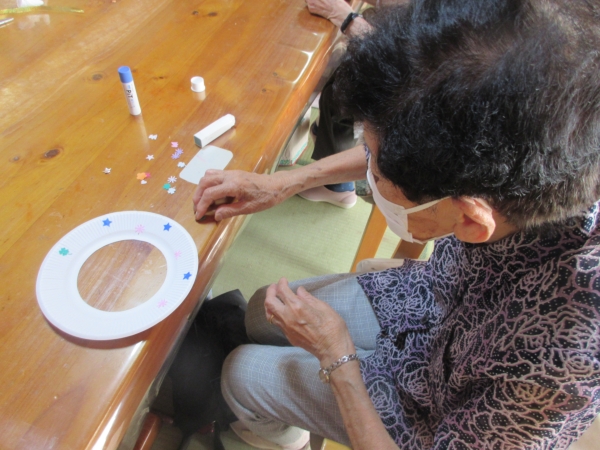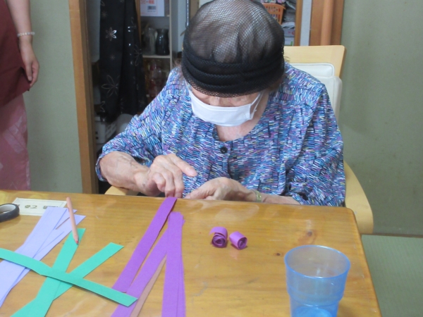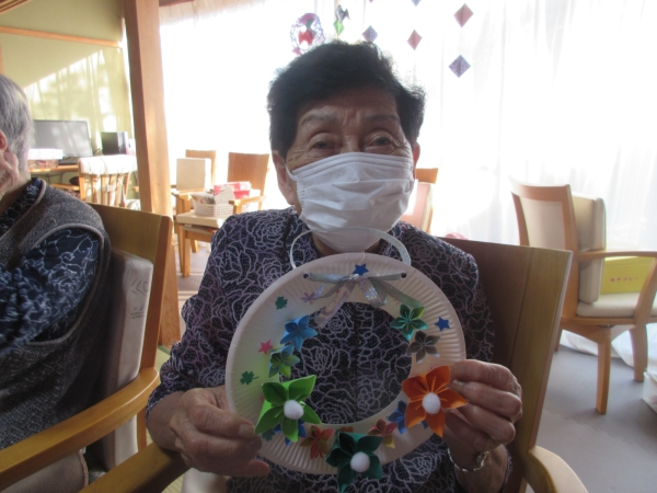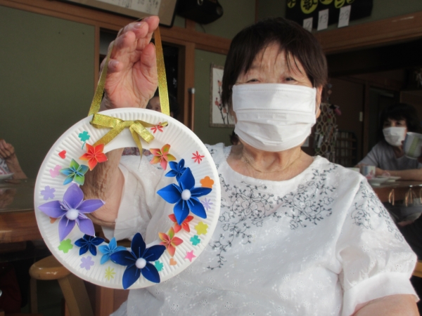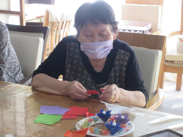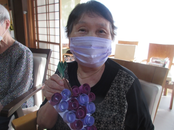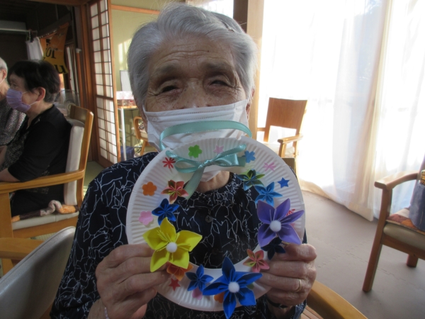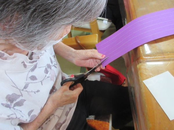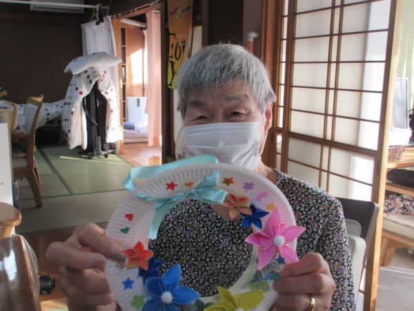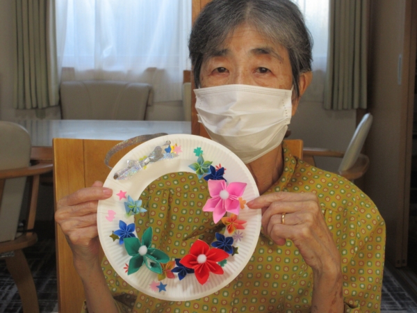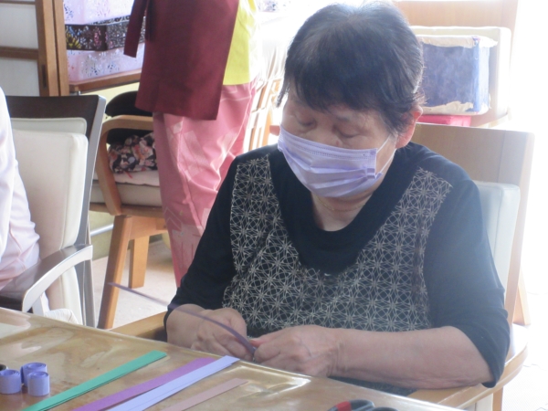 本日の午前のレクリエーションは秋の飾りを作っていきますよ