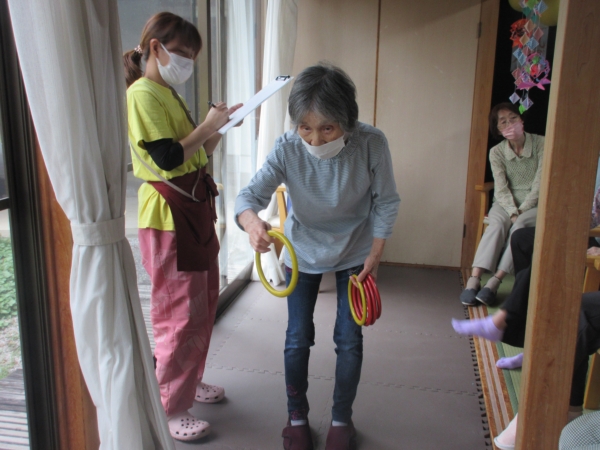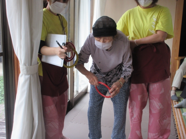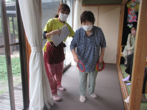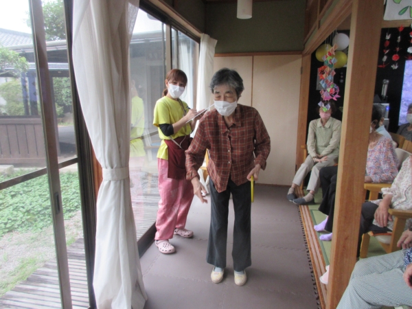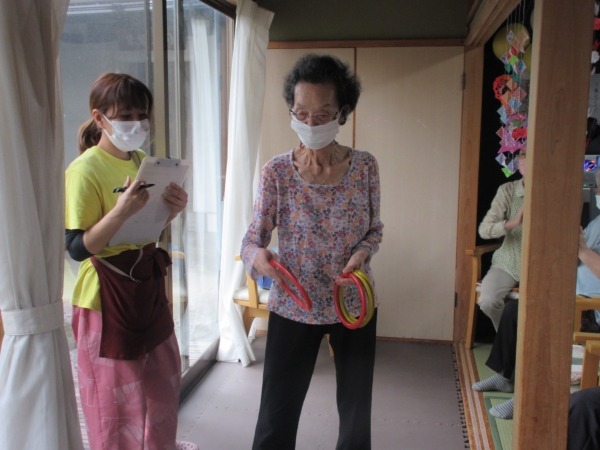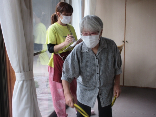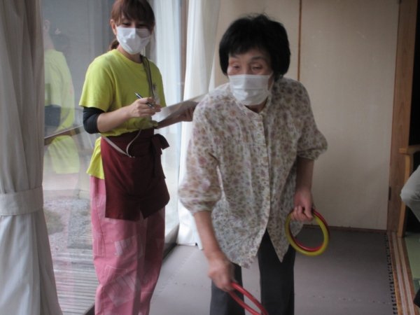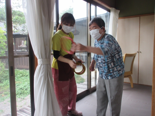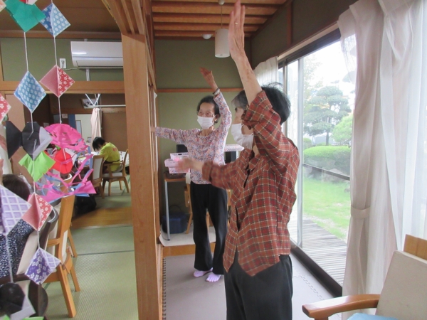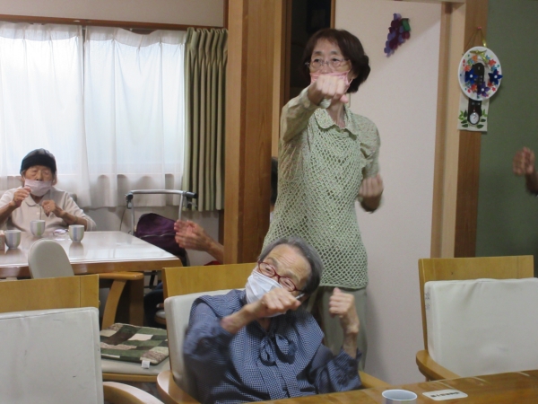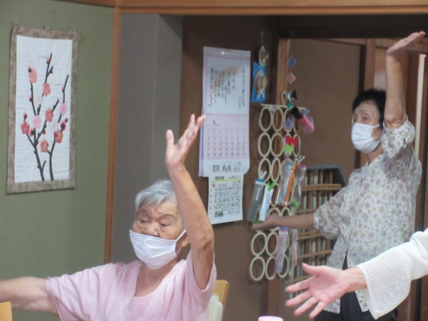 歌謡体操で身体をほぐして、午前のレクを行いましょう