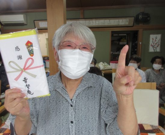 1位、2位の母達へは景品として「幸望庵タオル」が進呈されました