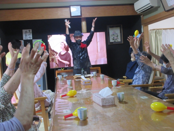 歌謡ショーが始まった時に比べて皆さんの腕が高く上がって