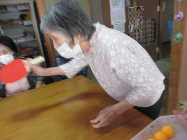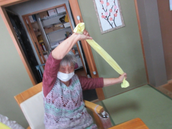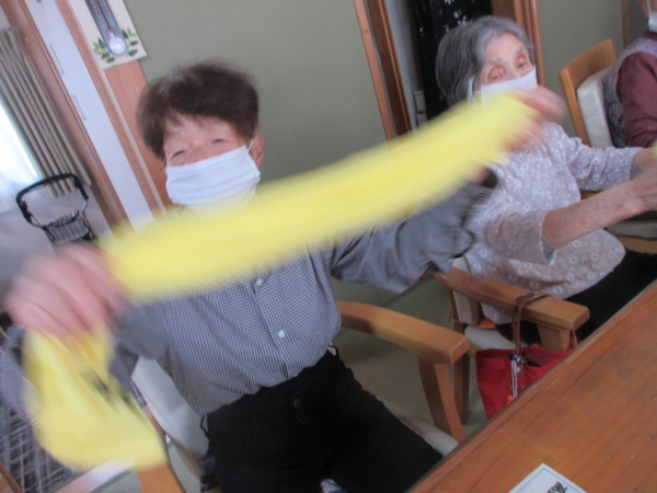 体操は、音楽体操とタオル体操を組み合わせた体操