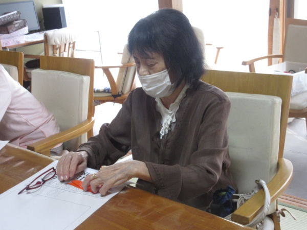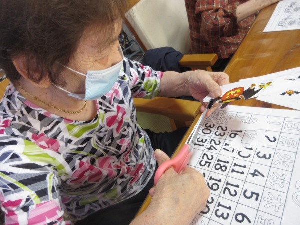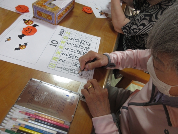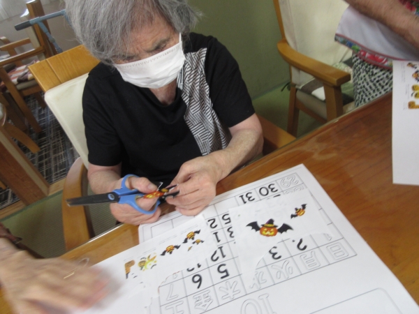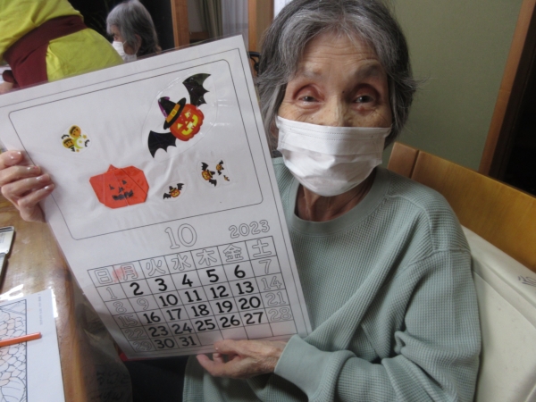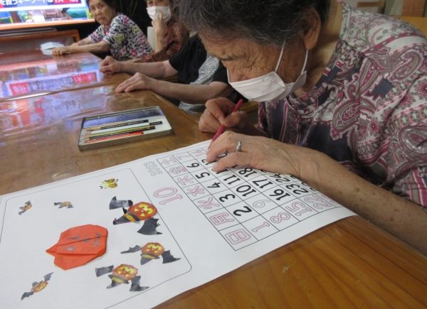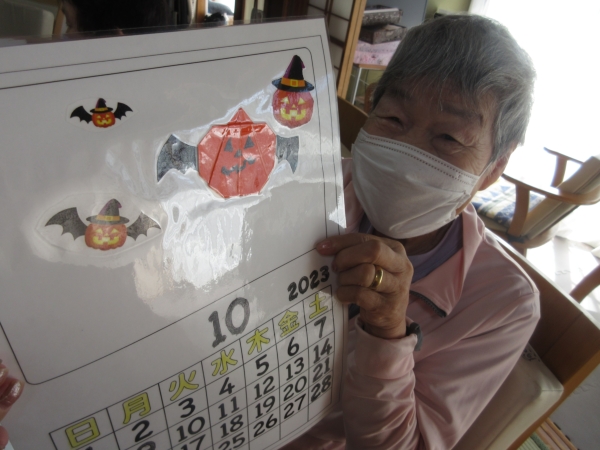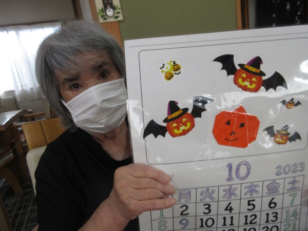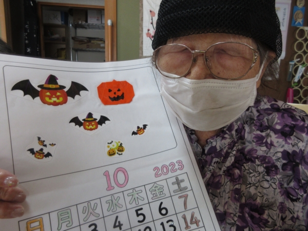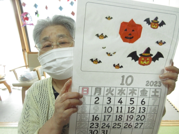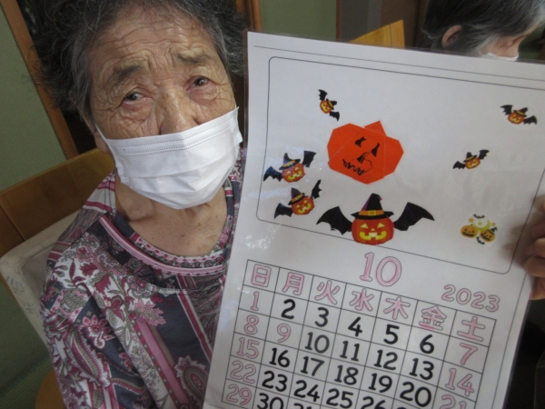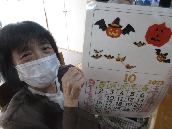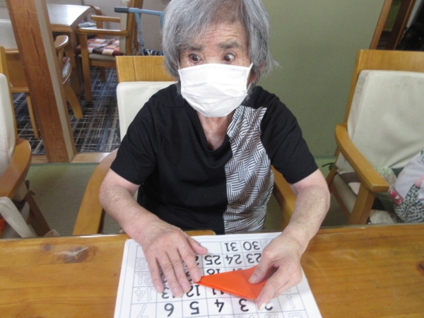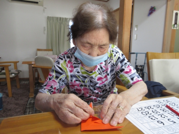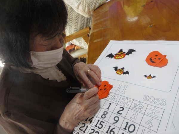 オレンジの折り紙を使って、ジャックオランタンを折りますよ