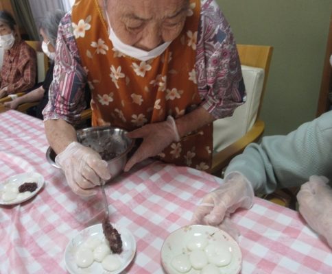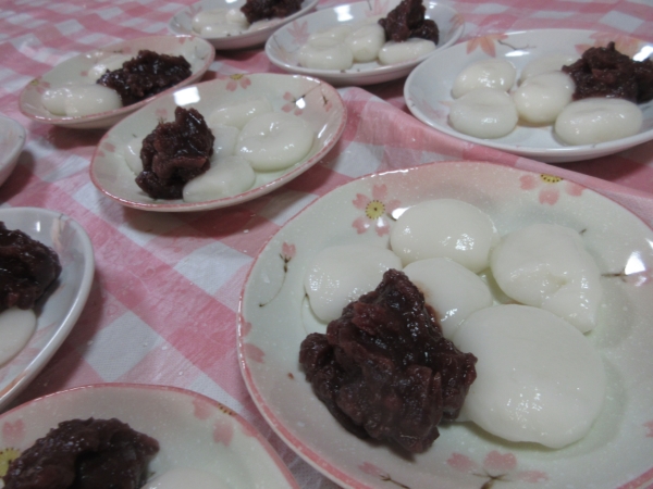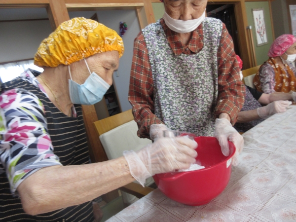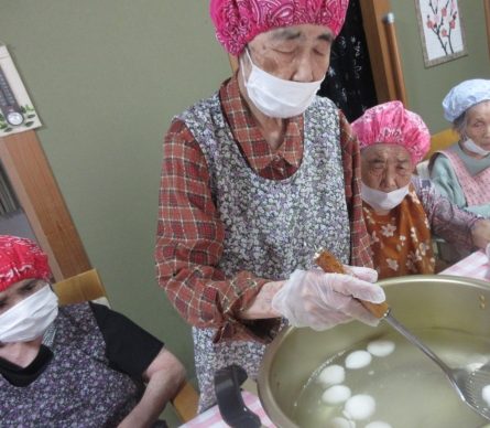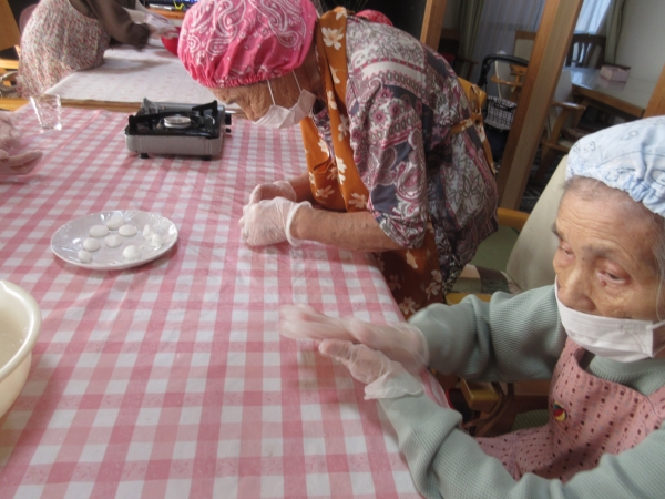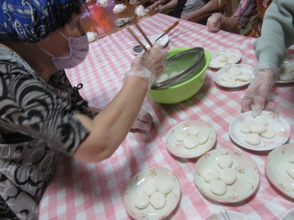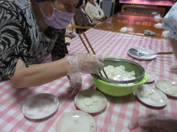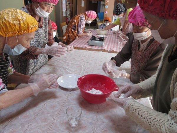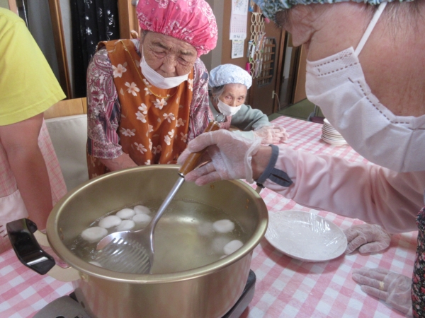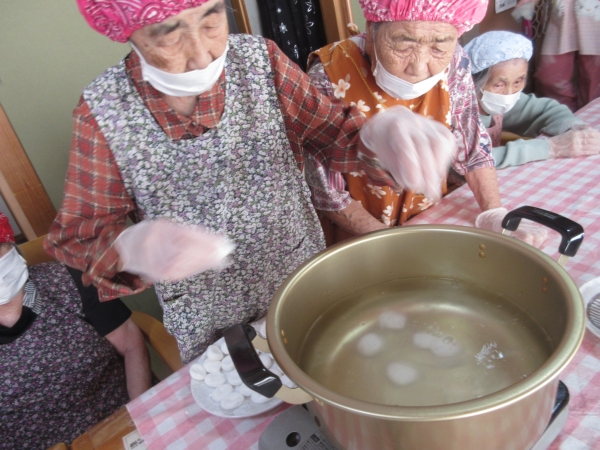 母達が、お湯に入れて白玉が浮き上がってきたら出来上がりだよ