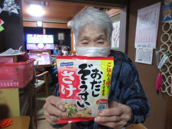では、ビンゴになった母から景品を選んでいただきましょう