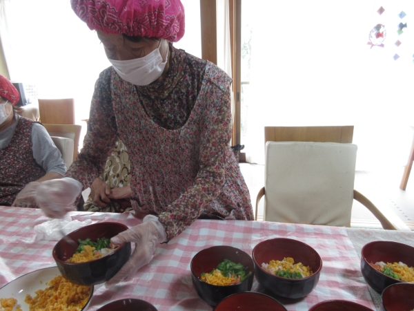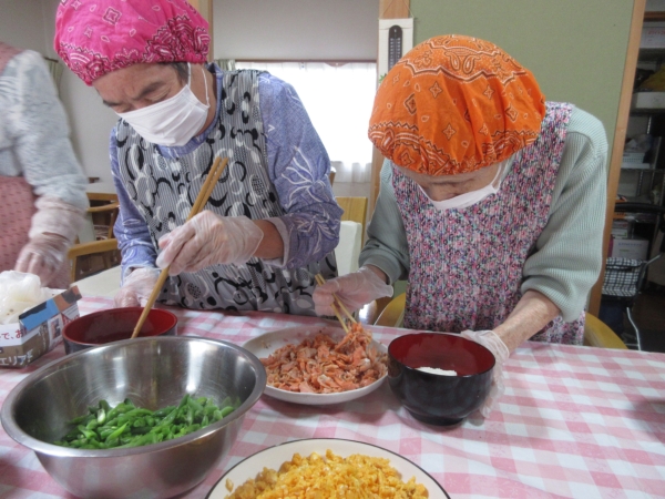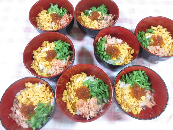 三色丼も見た目よく丁寧に盛り付けしてくださる母たちです