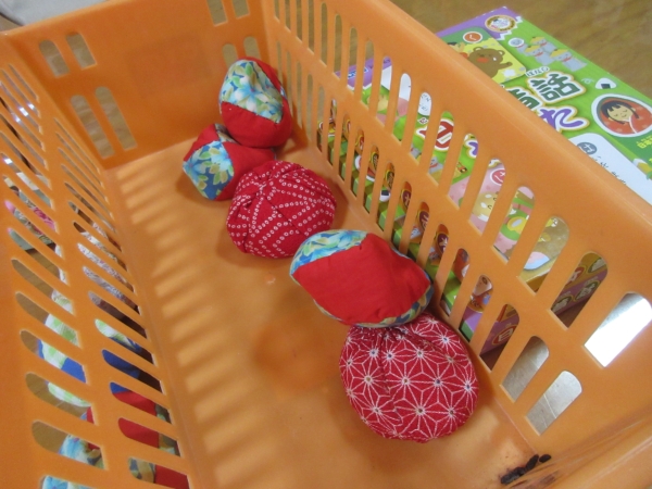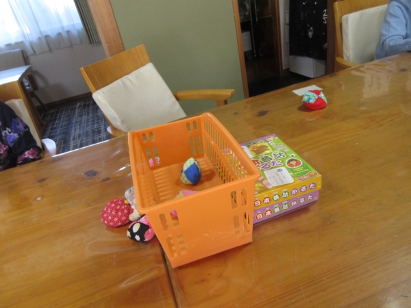 籠の中にお手玉を入れていきます