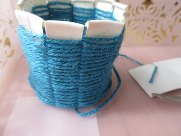 可愛らしい麻ひもで作った小物入れ完成で~す