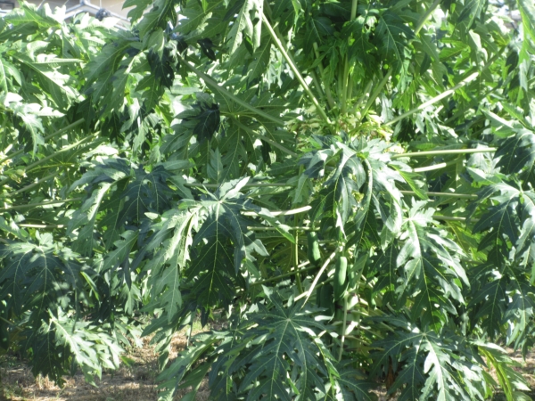 散歩途中で見かけたのは、青パパイヤ