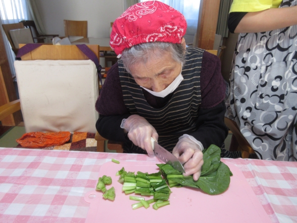 小松菜は3㎝位のザク切りにしていきます