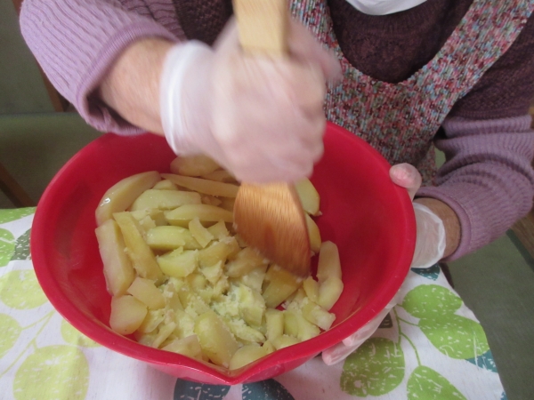 茹でたじゃが芋を適当な大きさにカットして、