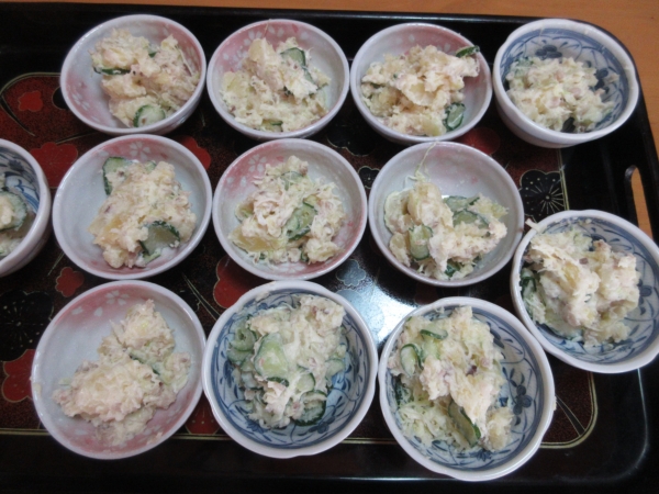 いぶりがっこのポテトサラダの完成で~す