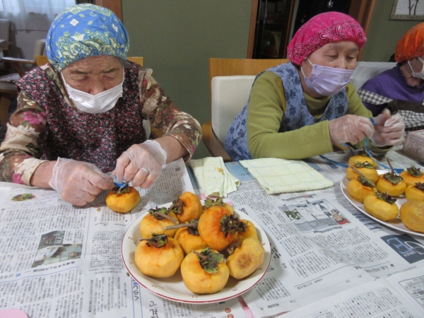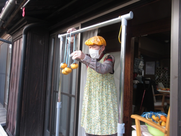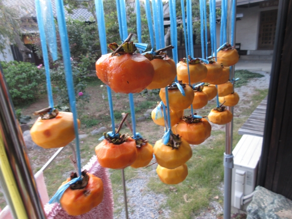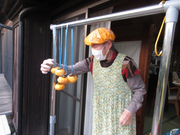 風通しの良いところに柿を干しましょ
