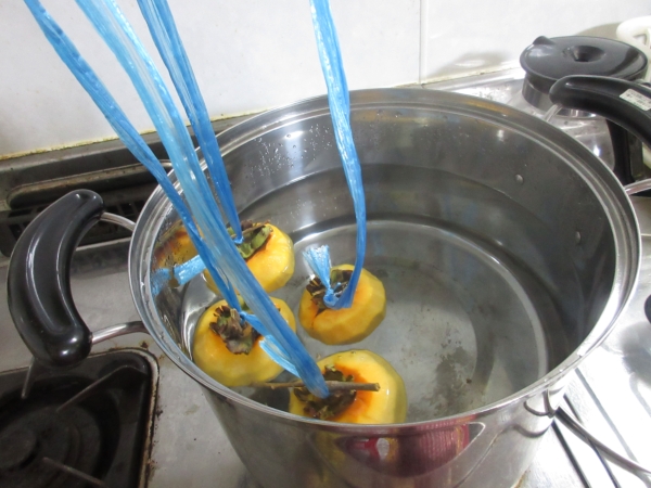 最初に柿をタオルで拭いて綺麗にしていきます