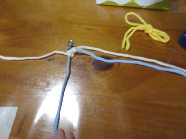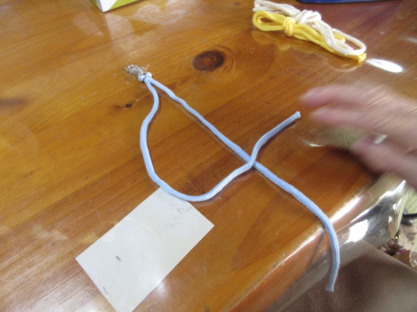 紐をテーブルに付けて早速編んで行きます