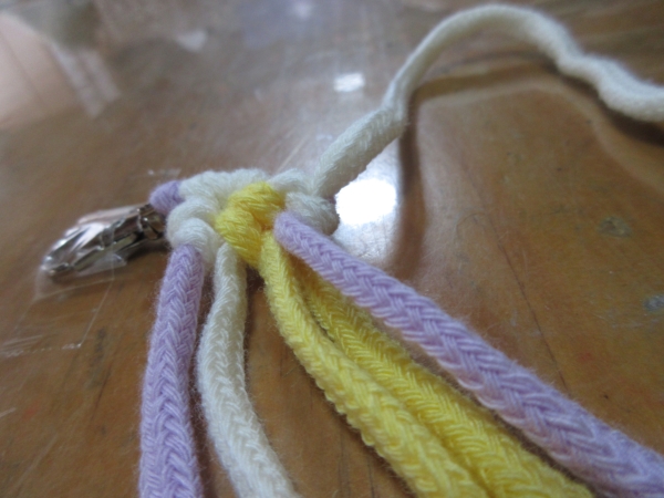 紐を交互に編むのですが