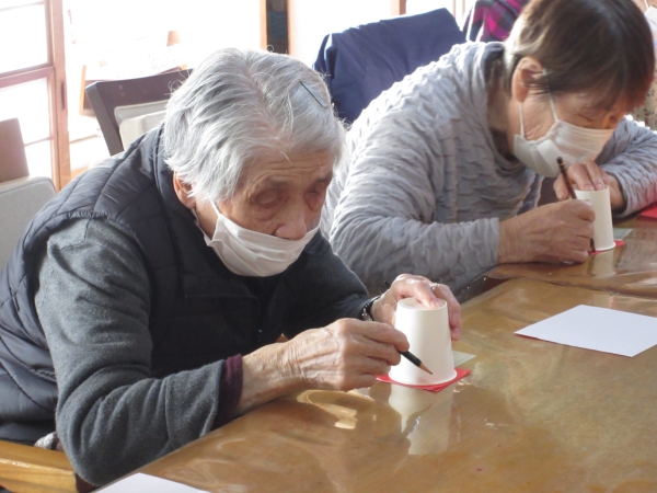 皆さん真剣に、紙コップを使い〇を書いていきます