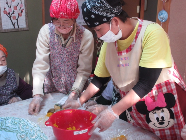 こちらは、かなちゃんと一緒に南瓜団子作りを