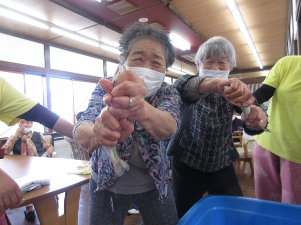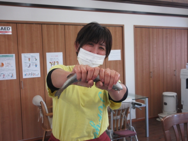 寄居町の風布にじます釣り堀センターの女将が来てくださいました