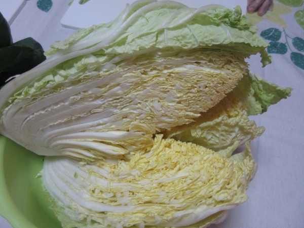 白菜は硬い芯と柔らかい葉の部分に分けてカットします🔪