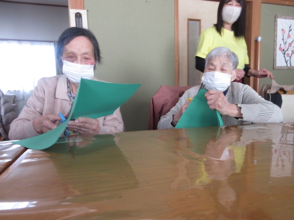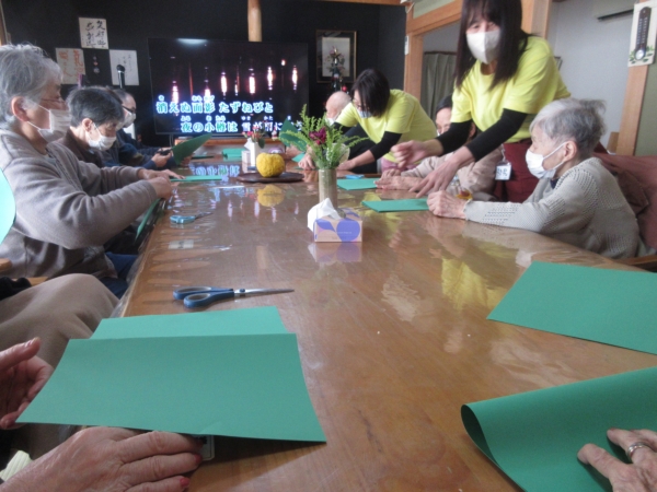 クリスマスカラーのグリーンの画用紙で