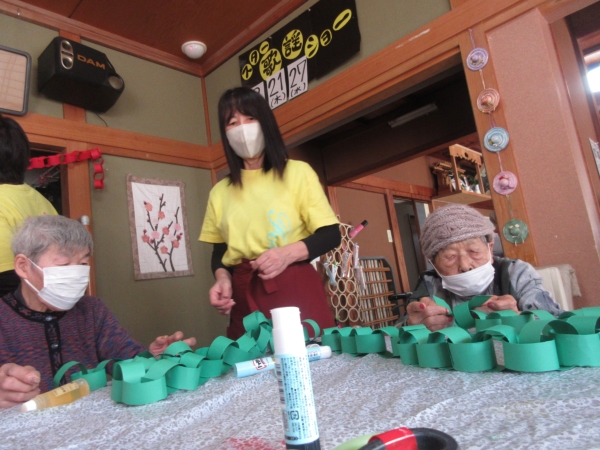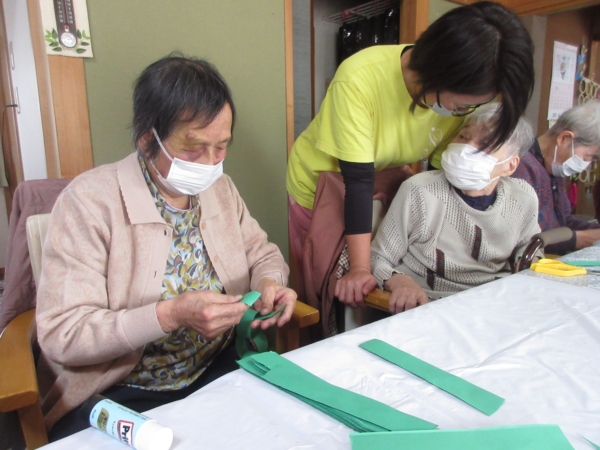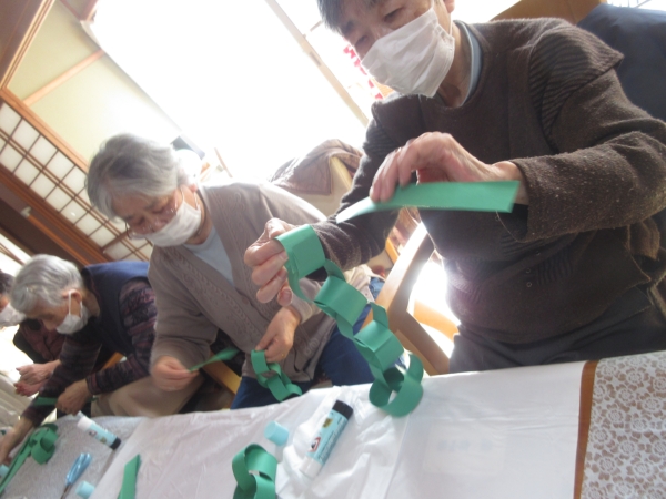 輪っか飾りをしますよるんるん (音符)