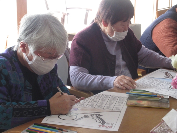 カレンダーが終わった方は、塗り絵を楽しんで頂きました