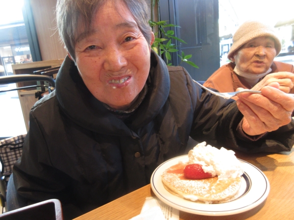 パンケーキを見て、皆さんの嬉しそうな表情を見てください