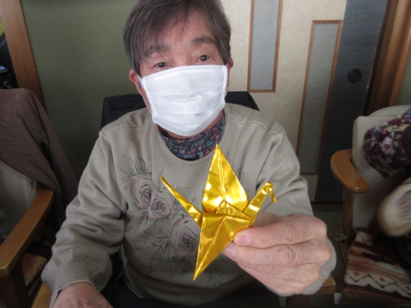 指の体操を兼ねて毎日鶴を折っている母は…スイスイと折り上げちゃいました指でOK