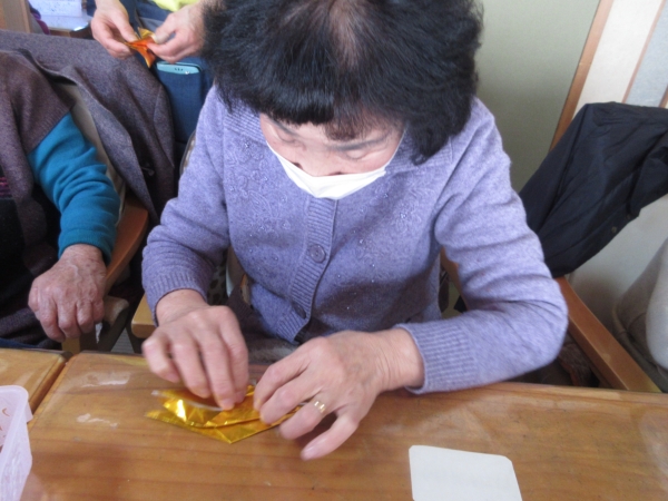 先ずは、金色の折り紙で鶴を折っていきましょうグッド (上向き矢印)