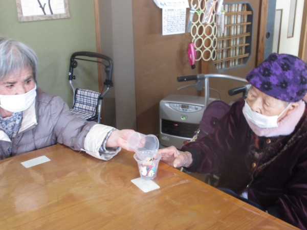 なるべく早くお手玉をお隣さんのカップに入れていきます