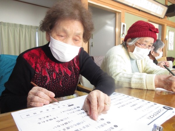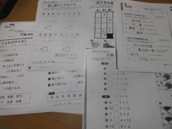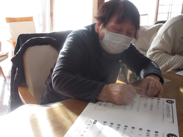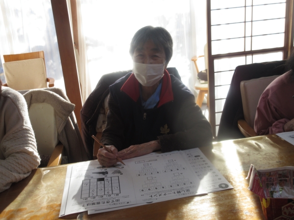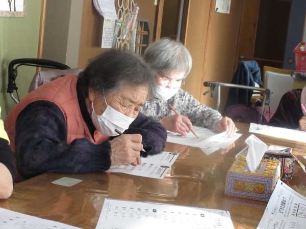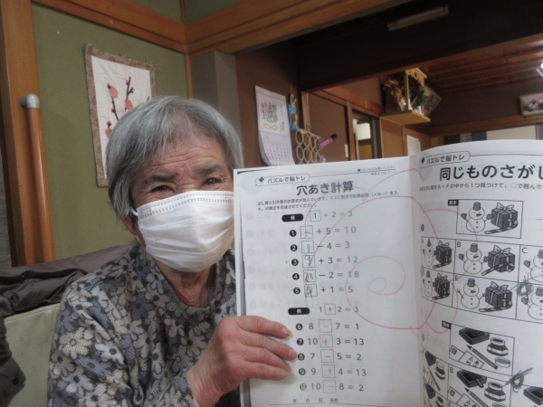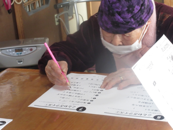 午後は脳トレで穴あき計算やことわざクイズにチャレンジです
