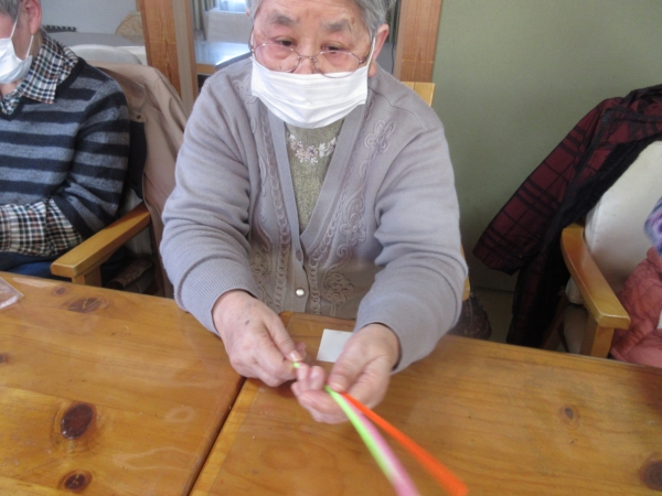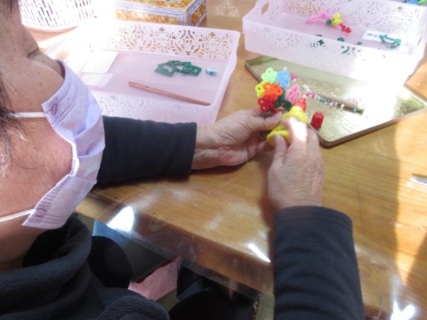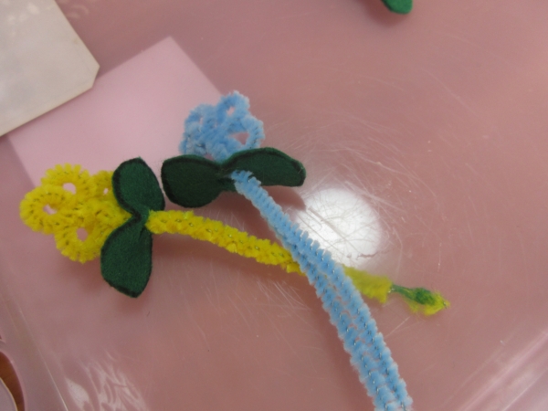 お花に形にするには、くるくると巻いたモールの鉛筆を取り