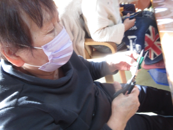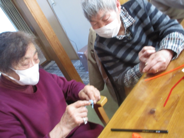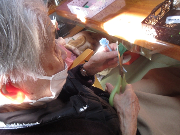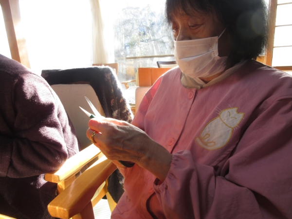 お昼の休憩時間に昨日作ったコマを、母が作っていました
