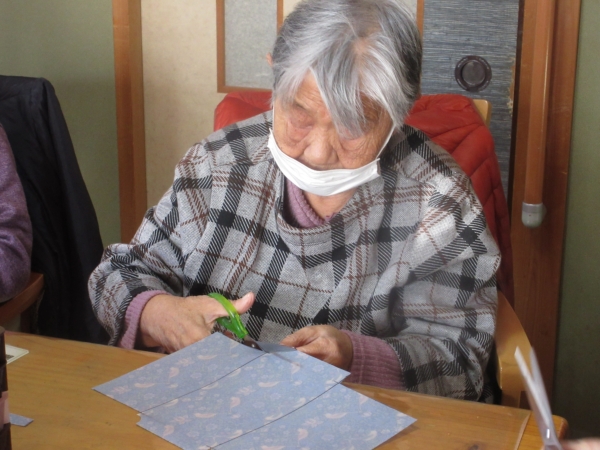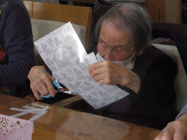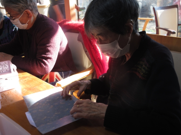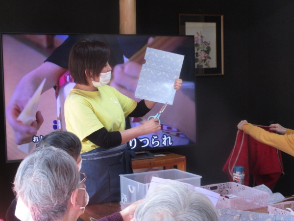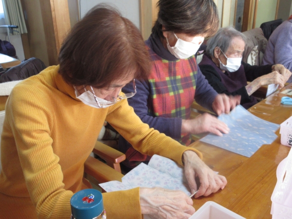 かなちゃんが折る所を説明し、みんなでやっていきましょう