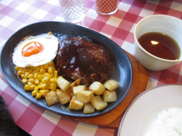 美味しそうなハンバーグが来ましたようれしい顔ハートたち (複数ハート)