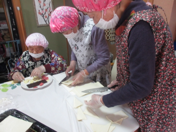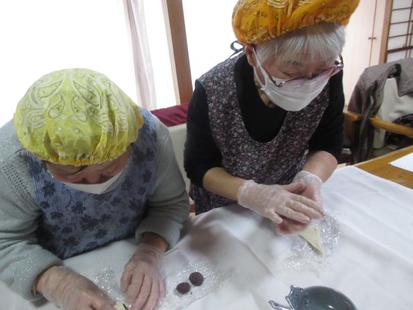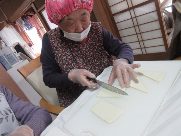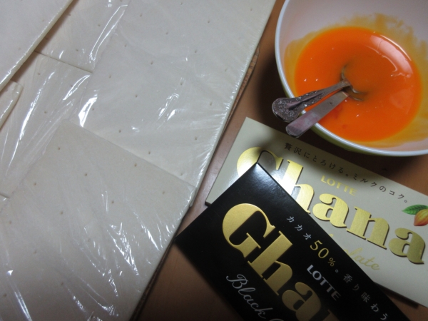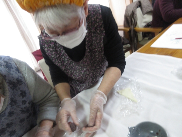 端に、チョコレートを乗せてクルクル巻いて行きます