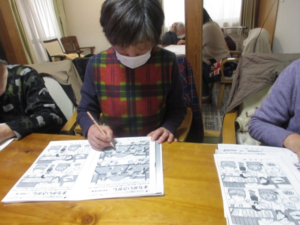 午後からは、穴埋め問題と間違い探しの脳トレタイム