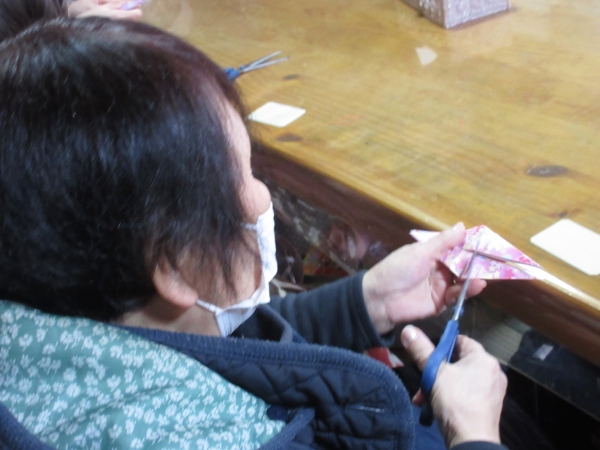折るだけでなく、はさみで切り込みお入れていきます