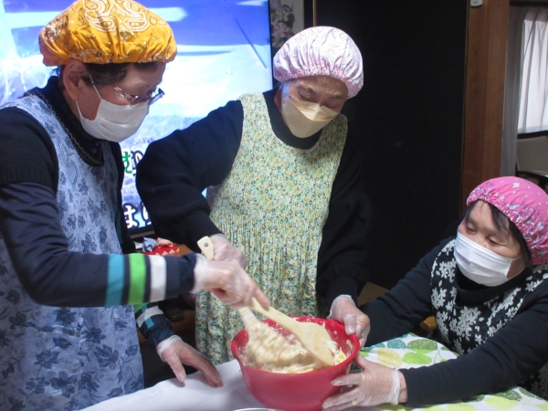 そしたら、母達仲良く協力し混ぜていきます