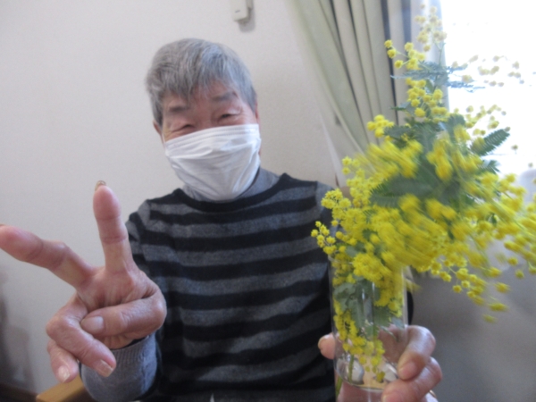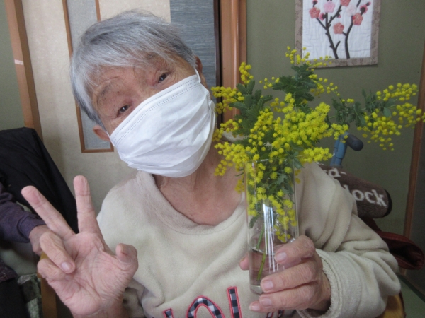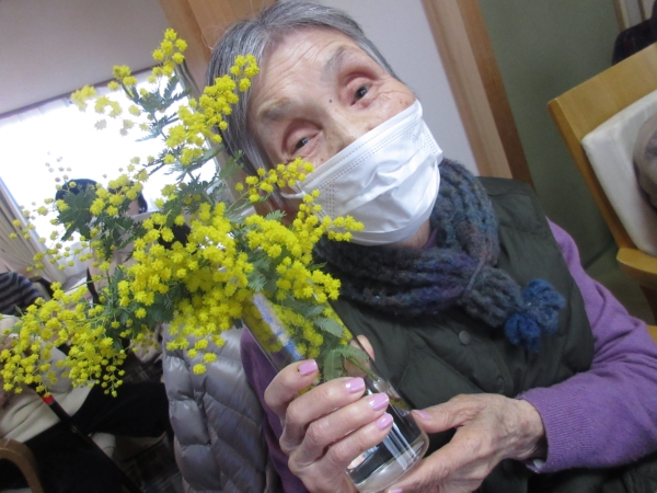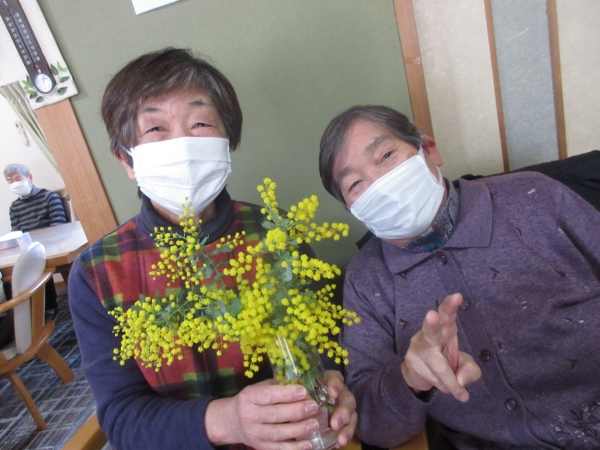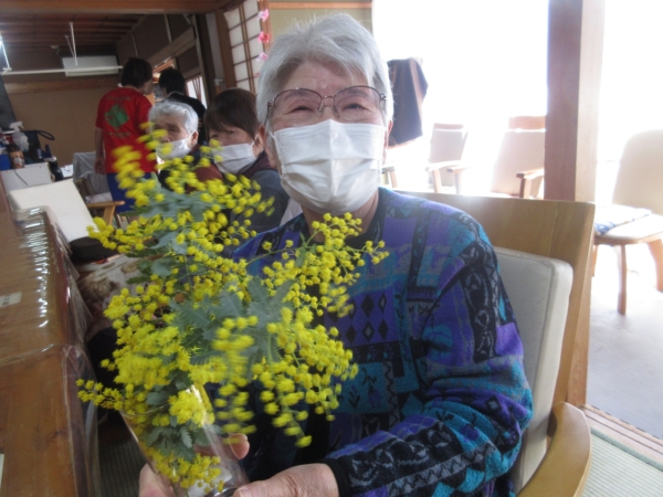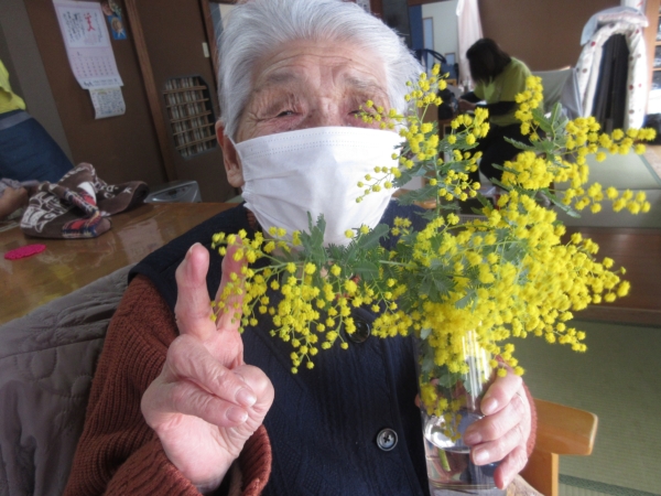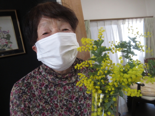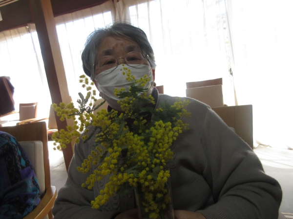 男性が日々の感謝の意を込めて、女性に美しいミモザの