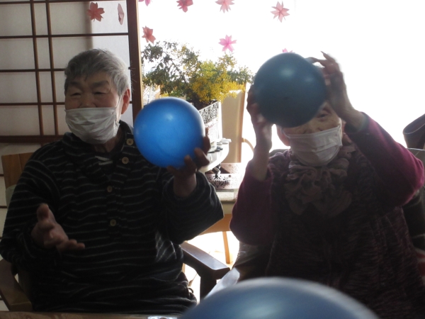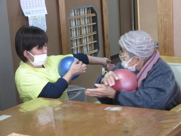 頑張って身体を動かした後は、ボールを歌いながら回し