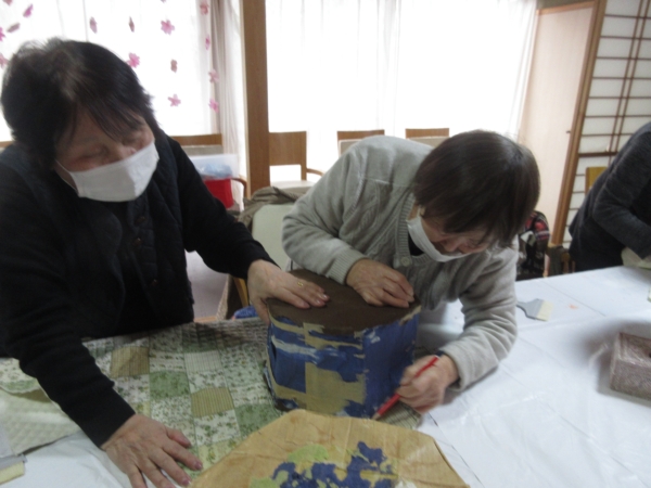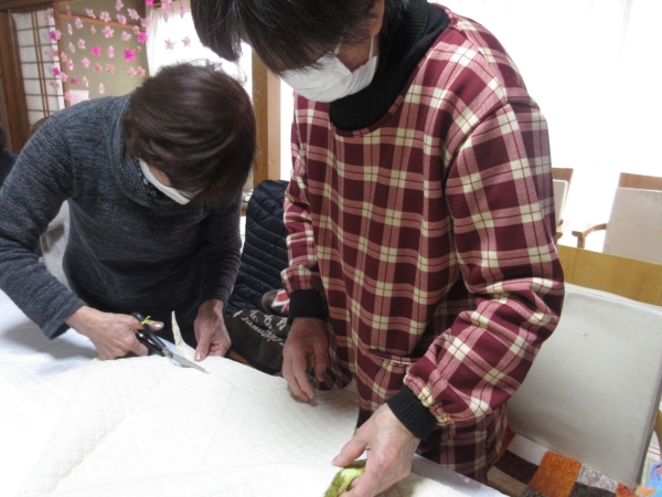 布が剥がれないようにしっかりと糊付けを行いー (長音記号2)