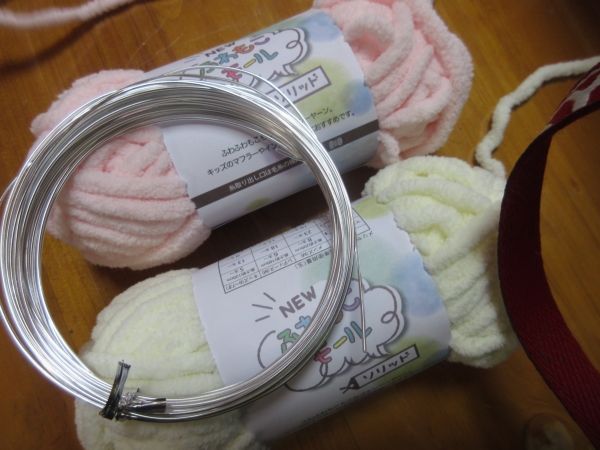 針金にグルグル台風毛糸を巻き付けていきますようれしい顔ハートたち (複数ハート)