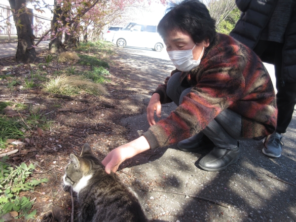 桜を見ていたら、猫ちゃんが来ましたうれしい顔ハートたち (複数ハート)